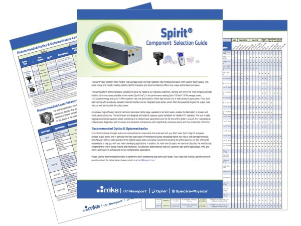 It is critical to choose the right optics and optomechanical components that work best with your Spirit laser. Spirit’s high IR and green average output power, and in particular the high peak power of femtosecond pulses necessitate optics that have a high damage threshold. MKS Newport offers a wide selection of the highest quality optics and optical components covering the entire spectrum UV, VIS, NIR and IR wavelengths to help you with your most challenging applications.